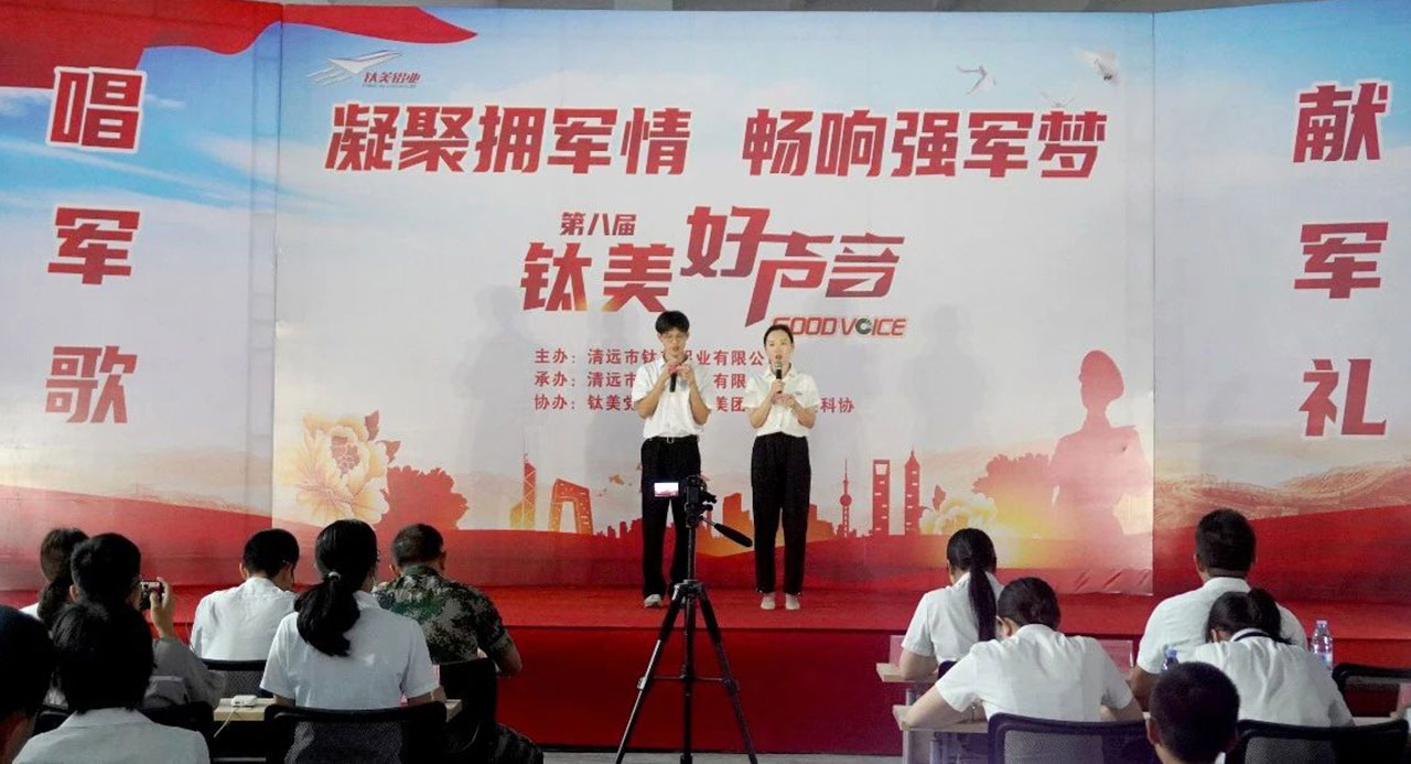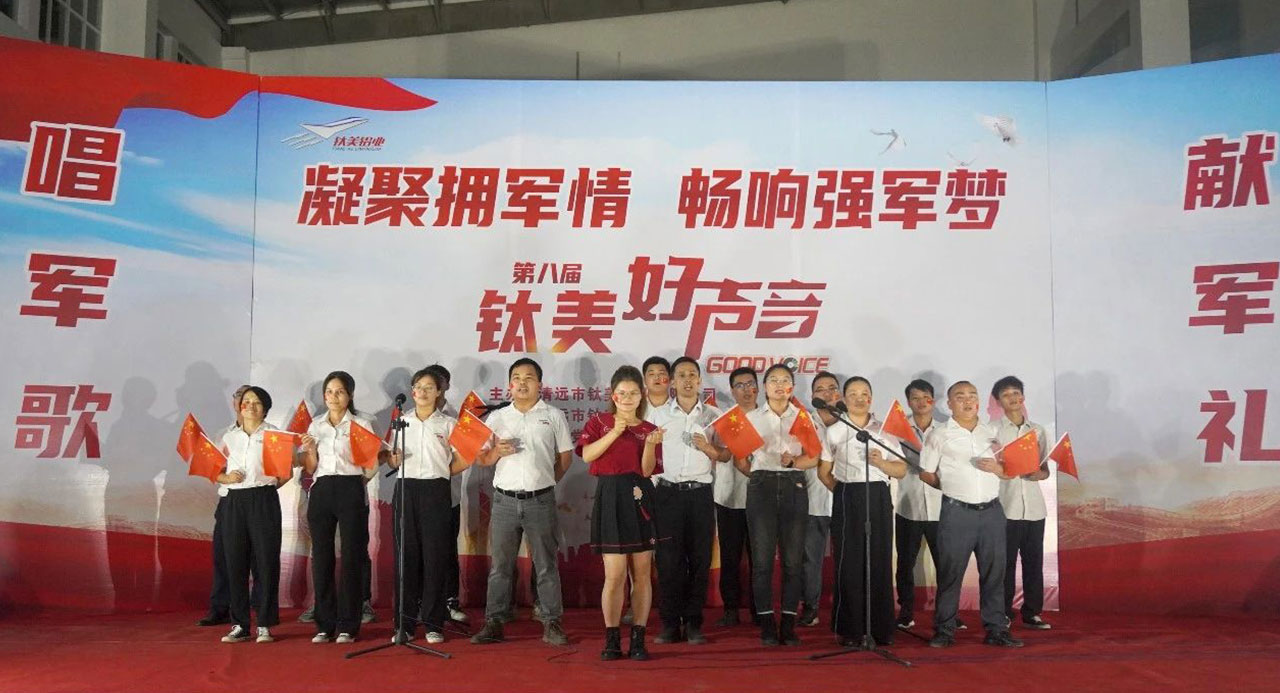 為慶祝中國人民解放軍建軍96周年,弘揚愛國主義精神,營造尊軍、擁軍、愛軍、護軍的濃厚氛圍。2023年8月1日晚,鈦美鋁業(yè)有限公司開展以“凝聚擁軍情,暢響強軍夢”為主題的歌詠活動。公司全體高管團隊共同參加。此次活動由16支參賽隊伍組成,共計200余人參加。