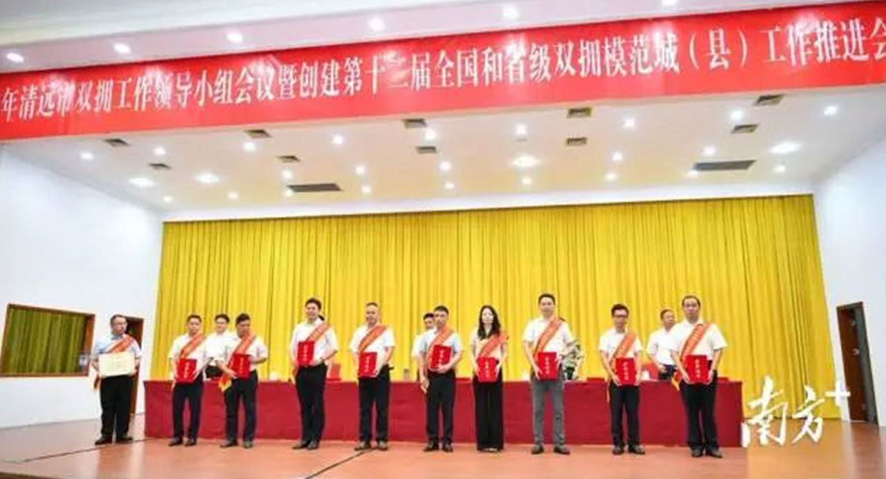清遠(yuǎn)市委副書記、市長、市雙擁工作領(lǐng)導(dǎo)小組組長溫文星等參會領(lǐng)導(dǎo)為獲評人員頒獎(jiǎng)。