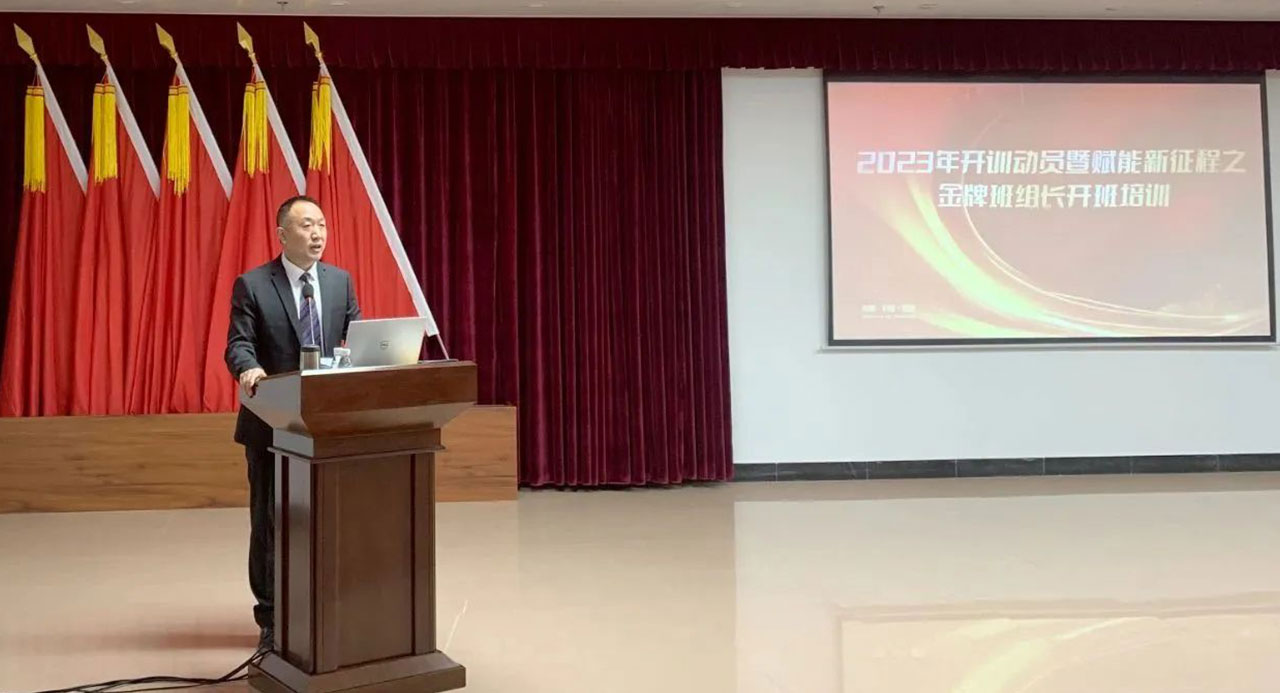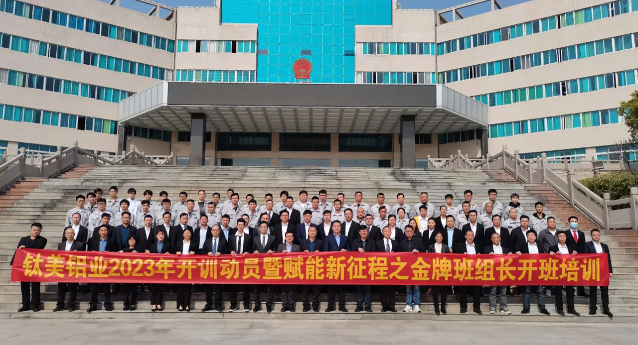 區(qū)委組織副部長賈輝在“鈦美鋁業(yè)2023年開訓(xùn)動員暨賦能新征程之金牌班組長開班培訓(xùn)”環(huán)節(jié)的致辭中提到,黨的二十大報告明確必須堅持科技是第一生產(chǎn)力、人才是第一資源、創(chuàng)新是第一動力,深入實施科教興國戰(zhàn)略、人才強國戰(zhàn)略、創(chuàng)新驅(qū)動發(fā)展戰(zhàn)略,開辟發(fā)展新領(lǐng)域新賽道,不斷塑造發(fā)展新動能新優(yōu)勢。鈦美鋁業(yè)要順勢而為,充分利用現(xiàn)有的培訓(xùn)平臺和完整的培訓(xùn)體系,力爭打造一批工匠型技工隊伍、敢想敢干有擔(dān)當(dāng)?shù)墓芾砀刹?,以“走在前、作表率”的要求,將清城區(qū)的“競標(biāo)爭先”活動落到實處。