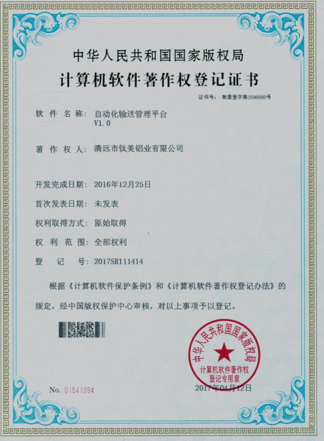 鈦美自創(chuàng)建以來不斷擴(kuò)大與培養(yǎng)自身的研發(fā)團(tuán)隊(duì),獲得了20多項(xiàng)專利,并與華南理工大學(xué)、中南大學(xué)等高等院校合作,確保公司強(qiáng)勁的研發(fā)創(chuàng)新能力。多年來,鈦美積累了豐富的鋁型材生產(chǎn)經(jīng)驗(yàn),培養(yǎng)了一批技熟藝精的精英隊(duì)伍,吸納了一批優(yōu)秀的管理入員,所生產(chǎn)的“鈦美”牌鋁合金建筑、工業(yè)型材均嚴(yán)格按照國(guó)家標(biāo)準(zhǔn)GB5237-2008組織生產(chǎn)。