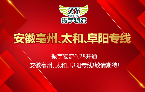 熱烈祝賀振宇物流6月28日開(kāi)通安徽亳州、太和、阜陽(yáng)專線!阜陽(yáng)可中轉(zhuǎn)界首、臨泉、阜南、潁上、利辛...