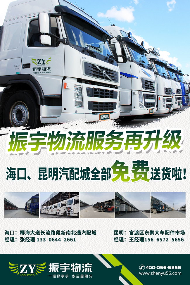 為更好的優(yōu)化物流服務(wù),振宇物流開啟“海口、昆明汽配城全部免費(fèi)送貨”服務(wù),讓廣大新老客戶真正獲得更加便捷、高效、優(yōu)質(zhì)的物流體驗(yàn)。
