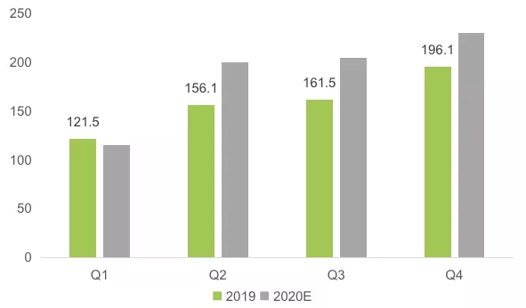受新型冠狀病毒疫情影響,多地出臺(tái)了交通管制和人員限行的措施,短期對(duì)快遞業(yè)務(wù)發(fā)展有較大影響,主要體現(xiàn)在一季度數(shù)據(jù)。假定疫情在2月底得到有效控制的情況下,預(yù)計(jì)一季度快遞業(yè)務(wù)量120億件左右,總體與上年基本持平。經(jīng)歷3月恢復(fù)調(diào)整后,市場(chǎng)需求將加速釋放,二季度快遞業(yè)迎來速度提升期,增速將明顯加快,預(yù)計(jì)該季度業(yè)務(wù)量規(guī)模為200億件左右,增速將重回30%以上。下半年將恢復(fù)常態(tài)運(yùn)行,預(yù)計(jì)三季度和四季度快遞業(yè)務(wù)量規(guī)模分別為200億件和230億件左右,全年快遞業(yè)務(wù)量規(guī)模將超過750億件??爝f價(jià)格觸底反彈,預(yù)計(jì)全年業(yè)務(wù)收入增速將首次超過業(yè)務(wù)量增速。