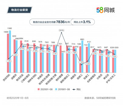 薪酬水平也是物流行業(yè)就業(yè)的重要指標(biāo),58同城招聘研究院數(shù)據(jù)顯示,今年1-8月,交通運(yùn)輸、倉(cāng)儲(chǔ)和郵政業(yè)支付月薪達(dá)到7836元,同比上升3.1%。典型職位中,貨運(yùn)司機(jī)支付月薪第一,達(dá)到10808元;送餐員支付月薪排名第二,為9200元;物料管理支付月薪同比上升最快,增幅38%,月薪達(dá)到7531元。可見,物流行業(yè)崗位薪資與崗位技術(shù)含量、市場(chǎng)需求、勞動(dòng)強(qiáng)度密切相關(guān),技術(shù)含量高、市場(chǎng)需求大、勞動(dòng)強(qiáng)度大的崗位收入更高。