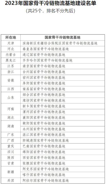 濟(jì)南物流:25個!2023年國家骨干冷鏈物流基地建設(shè)名單公布