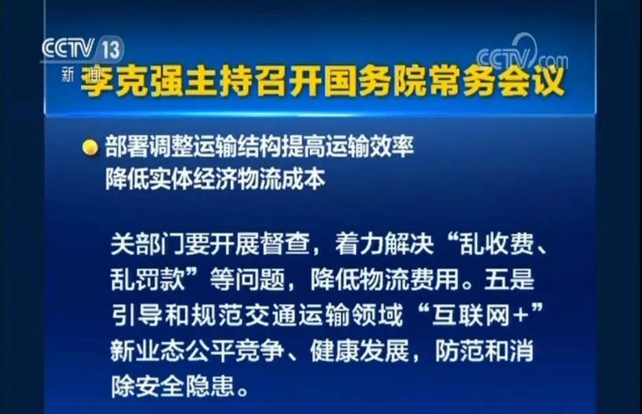 國務(wù)院總理李克強(qiáng)6月27日主持召開國務(wù)院常務(wù)會議,聽取深入推進(jìn)“互聯(lián)網(wǎng)+農(nóng)業(yè)”促進(jìn)農(nóng)村一二三產(chǎn)業(yè)融合發(fā)展情況匯報;部署調(diào)整運(yùn)輸結(jié)構(gòu)提高運(yùn)輸效率,降低實體經(jīng)濟(jì)物流成本。會議指出,調(diào)整運(yùn)輸結(jié)構(gòu)、提高綜合運(yùn)輸效率,降低全社會物流成本,對提升實體經(jīng)濟(jì)競爭力至關(guān)重要。